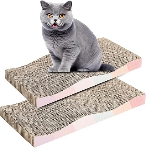 【PROTECT YOUR FURNITURE】:SIDAZON scratching pad provides cats an outlet to scratch, reducing unwanted scratching of other furniture 【ECO-FRIENDLY】:100% recycled corrugated cardboard and non-toxic glue are used to ensure there is no harmful material for your feline friends 【CURVED WAVE】:Curve designs…